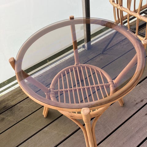 Sælger mit gamle bambus bord med 1 cm tyk glasplade, det står meget stabilt.