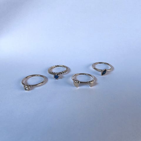Ringene er med sommerfugle, blomster og bladmønster. Alle er den brede og lidt dyrere udgave af Spinning ringene. Brugt 2-3 gange og er som nye.
