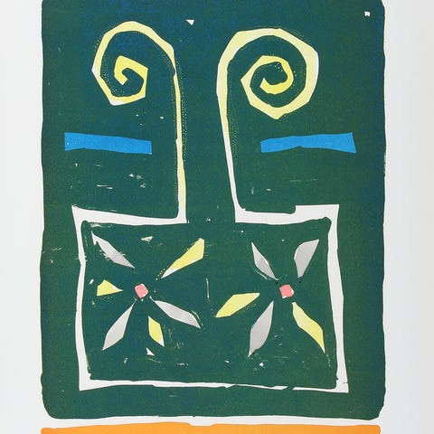 Flot sæt bestående af fire farveraderinger af den danske kunstner Sven Dalsgaard med titlen “Ingens stol” (1–4) fra 1986.