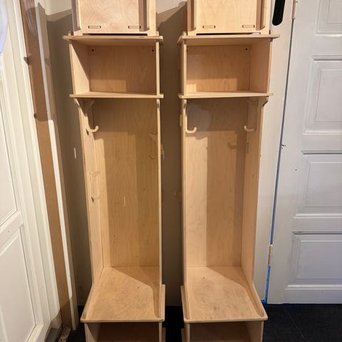 IKEA garderobeskab i hvid. Skabet har to låger med greb, to justerbare hylder samt fire trådkurve til opbevaring. Velegnet til opbevaring af tøj eller andet i børneværelset.