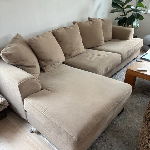 Sienna sofa med chaiselong i grå velour. Fra Daells bolighus
