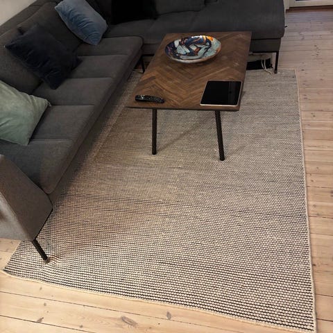 Tæppe i uld i rigtig god stand sælges da den ikke passer til min nye sofa. Den er rigtig nem at rengøre da den er selvrensende. Kommer i original pose.