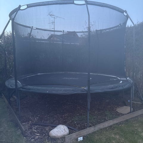 Trampolin fra 2018 gives væk gratis til vedkommende der gider skille den ad og hente den. Trampolinen har stået ude i alle årene, hvilket har efterladt spor. Men den er fortsat fuld funktionel og sikker. Hverken spring-måtten, stellet, fjedrene eller sikkerhedsnettet fejler noget. Det er primært den polstrede kant der er lidt medtaget, men med lidt knofedt kan den ligeledes se fin ud igen :-)