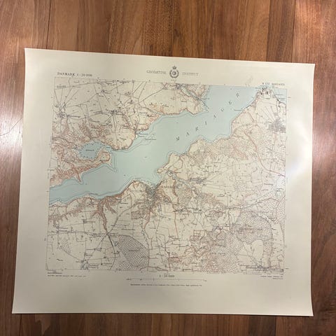 1 stk geodætisk kort over Mariager Fjord og 1 stk over Hobro i rammer 63x70cm. Varen er ikke ny og sælges derfor som brugt, derfor kan der forekomme ridser, slid og skrammer kun 200kr pr stk.