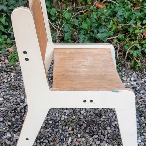 Stabil retro børne træstol med hynde