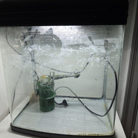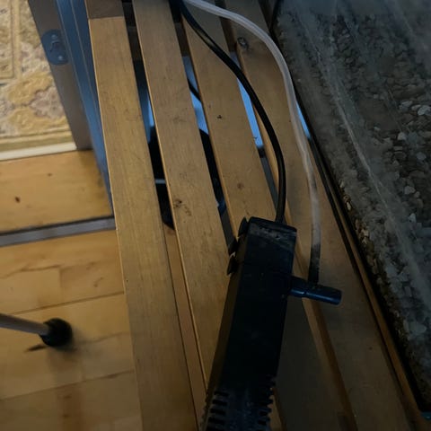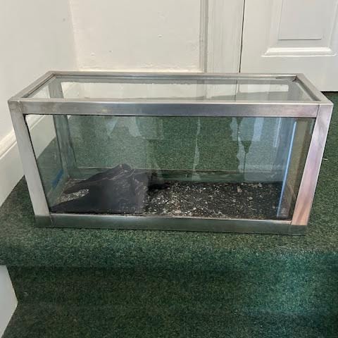 Det er et 40 L akvarie med lidt ridser i bunden der fylder en god pumpe og varme anlæg med i prisen. hvis man vil have stenene og grene med så finder vi en pris sammen