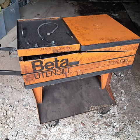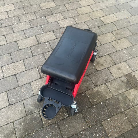 Maxshine Detail vogn i rød og sort. Den er i en rigtig god stand og har for det meste blevet brugt til opbevaring af bilpleje