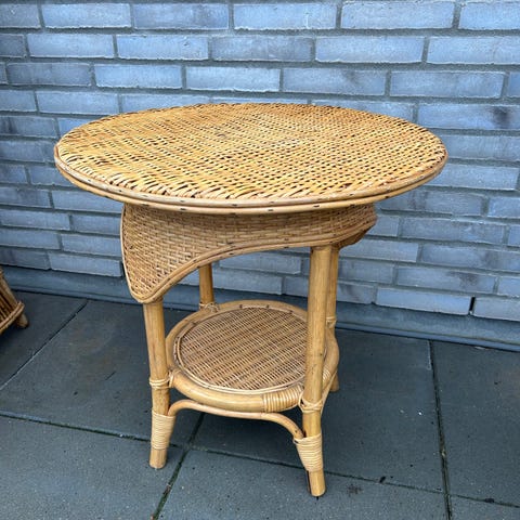 Kvadratisk sofabord i bambus i naturfarve. Bordet har lamelbordplade og krydsafstivede ben for stabilitet. Egnet som sofabord eller loungebord i stue, udestue eller på overdækket terrasse.