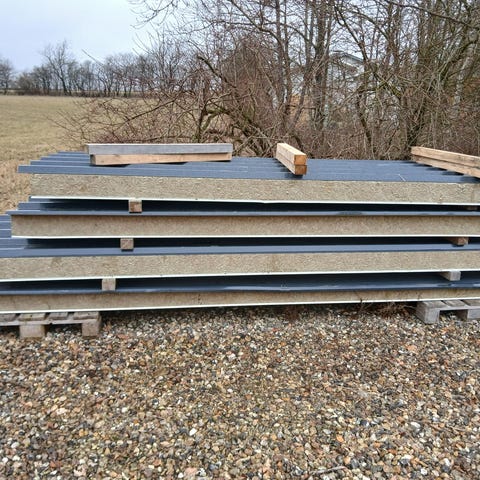 Sandwich stål rockwool facadepaneler. 100 mm tyk. Farve 7035 lys grå udv og 9010 hvid indv.