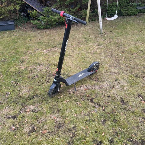 Veel S8 el-løbehjul i grå. Modellen har integreret digitalt display på styret med visning af hastighed og andre kørselsdata. For lygte hænger lidt. Køre super fint