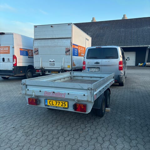 Brenderup boogie trailer med to aksler og nedfældelige sider. Traileren fremstår i hvid med galvaniseret chassis og stålsider. Udstyret med støttehjul foran, lygter bagtil samt reflekser og markeringslys på siderne. Velegnet til transport af materialer, haveaffald og lignende gods. Registreringsplade og lygteføring er monteret bagtil.