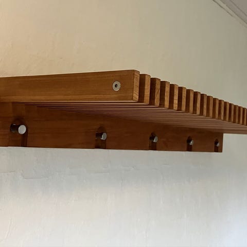 Flot og funktionel knagerække / hylde / garderobe i varm egetræ. Fra Skagerak model Cutter. Afhentes i Charlottenlund