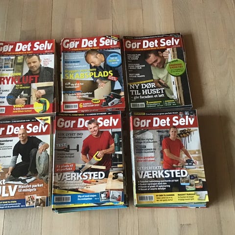 Gør Det Selv magasiner samling med forskellige numre om gør-det-selv projekter og byggeri. Bladene dækker emner som mikrocement, snedkerkøkken, isolering, terrassebyggeri og andre håndværks- og renoveringsopgaver i og omkring huset. Velegnet til inspiration og vejledning til både mindre reparationer og større byggeprojekter. Samlingen sælges samlet som et parti magasiner.