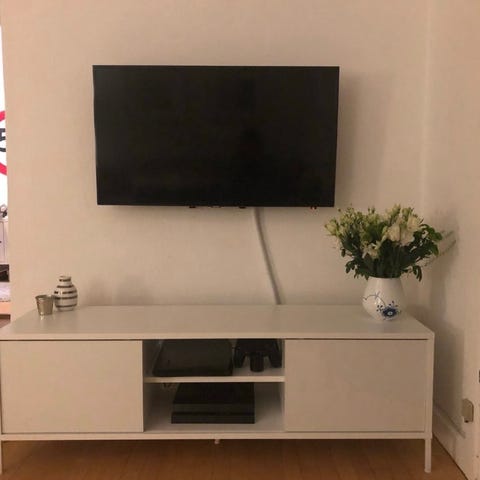 Brugt TV bord med lidt brugsridser, lavet hul til kabler.