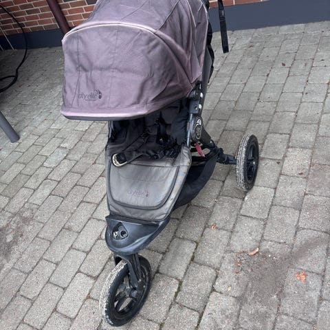 Baby Jogger klapvogn med tre hjul i lys grå farve. Vognen har justerbart ryglæn, fempunktssele og stor kaleche, som giver god skygge. Forhjulet er drejeligt og kan låses for mere stabil kørsel. Der er varekurv under sædet til opbevaring af fx taske eller indkøb. Håndtaget er ergonomisk udformet, og vognen er egnet til ét barn ad gangen.