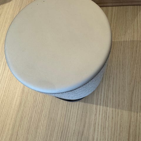 En af de smarte ting ved Beoplay M5 er, at stoffet er meget nemt at skifte. Man løfter blot højttaleren op og trækker betrækket af – og sætter det nye på. Det tager få sekunder og kræver intet værktøj.