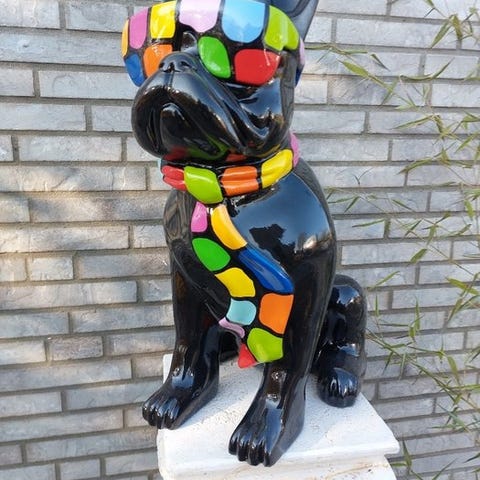 Fin syngende figur med hund til haveudsmykning er blevet i overskud.