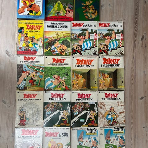 Asterix samling tegneserier 5 bind. Serien er skrevet af Goscinny og Uderzo og består af fem hardback-album med blå ryg. Hvert bind indeholder flere Asterix-historier om gallerne, romerne og landsbyen. Egnet som læsning for både børn og voksne samt til samling af klassiske tegneserier.