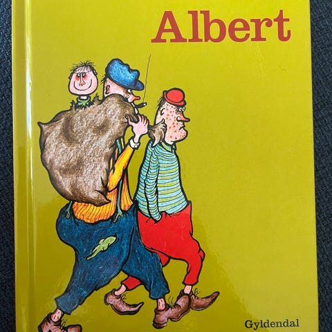 Ole Lund Kirkegaard Albert bog. Billedbog/ børnebog udgivet på Gyldendal med illustreret forside. Velegnet til højtlæsning eller selvstændig læsning for børn i skolealderen.