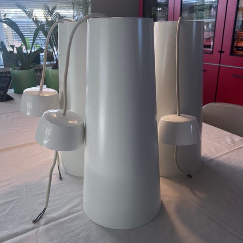 3 stk metal lamper, med intakt glas i bunden og pærer. 450 kr. pr. stk.