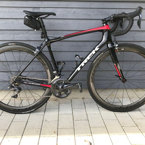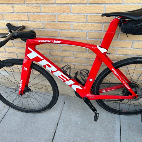 Sort Trek racer cykel fra 2013. Har været brugt som motionscykel om sommeren.