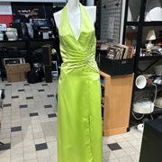 Flot "silke"-kjole med satinunderkjole med lynlåslukning bagpå.