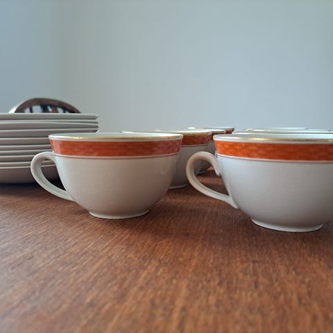 Det er Tureby som er designet af Nils Thorsson i årene 1934-1968. En orange fane og en håndmalet guldkant.