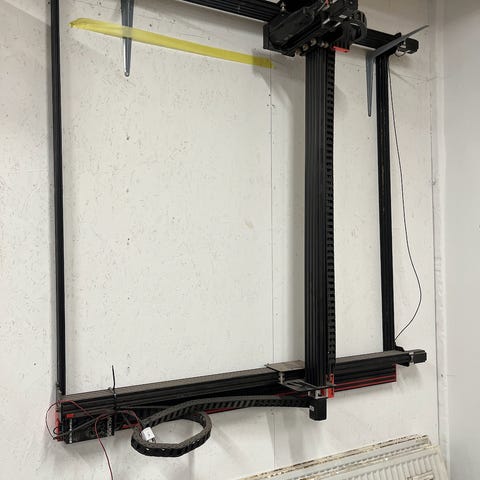 OBS: Maskinen har været skilt ad, og Y-aksen skal justeres for at maskinen kan køre fejlfrit.