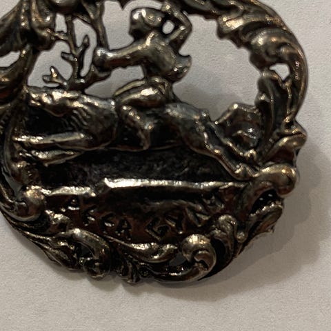 Broche, tin, Ukendt, Gammel antik Broche i slået tin.