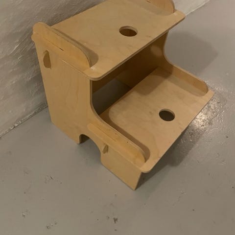 Er brugt til at komme op til høj seng/hems på børneværelse og samtidig fungere til opbevaring af legetøj.