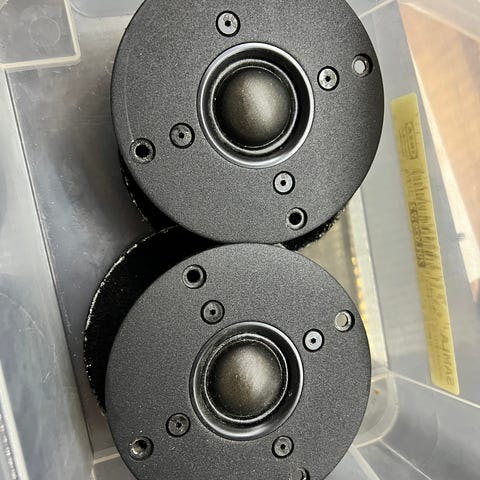 Her har jeg et sæt scansonic s9 som har set sine dage, de står ik så vildt godt længere jeg købte dem med en erstattet diskant men da den nye blev monteret spændte han lidt for hårdt så plastiken sprang, jeg fik en defekt diskant med hvis det er kan den også følge med, men ja de har gitter og fremstår i okay stand på trods af den lille stakkels diskant og de spiller sku udmærket, og har en rigtig god bas på trods af deres størrelse de kan selvfølgelig høres før køb