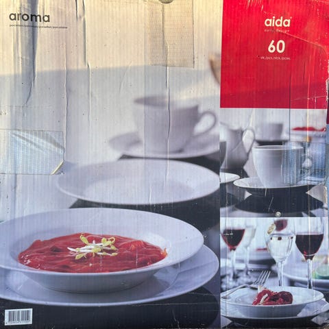 Diverse tallerkner, glas, bestik og krukker til festen, konfirmation eller lignende.