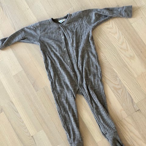 Den lilla Name it dragt er også med fint hulmønster og med ombuk ved fødderne. Den er 100% merinould. Den er som ny.