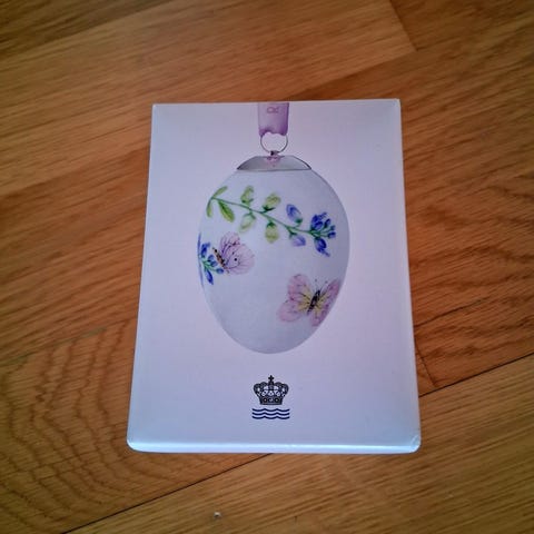 Royal Copenhagen Spring 2025 påskeæg i porcelæn. Sættet består af 2 ophængsæg i hvid porcelæn med blå fjerdekoration og blå snore til ophæng. Velegnet som påskepynt på grene, i vindue eller som borddekoration. Designet i Danmark af Royal Copenhagen.