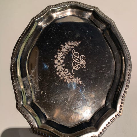 Lene Bjerre Kristel bakke i sølv – 35 cm (ny i æske)