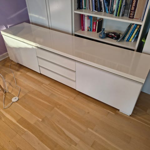 TV reol, skænk, TV møbel, lav reol, Væghængt skab med låger hvid og sort
