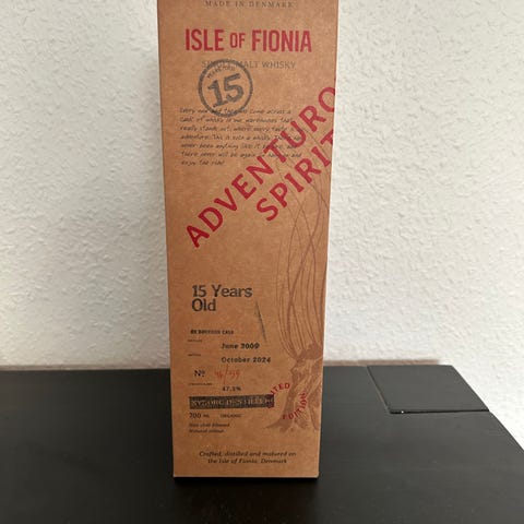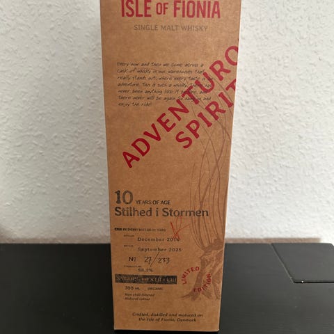 Isle of Fionia Nordic Highlander whisky i flaske på 50 cl. Single malt whisky tappet på glasflaske med original papæske. Et dansk produkt fra Fyn, til samlere af whisky. Oplysninger om alkoholprocent, batch og aftapningsdato fremgår af etiketten på flasken og æsken.