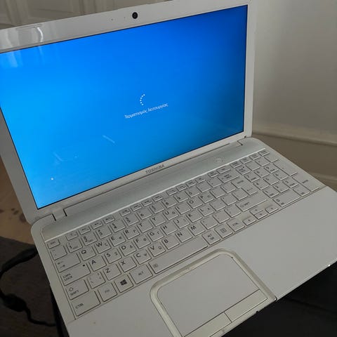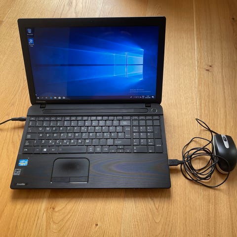 Toshiba bærbar computer i sort farve. Standard tastaturlayout med touchpad under tastaturet. Velegnet til generel brug som arbejde, studie eller internet og tekstbehandling.