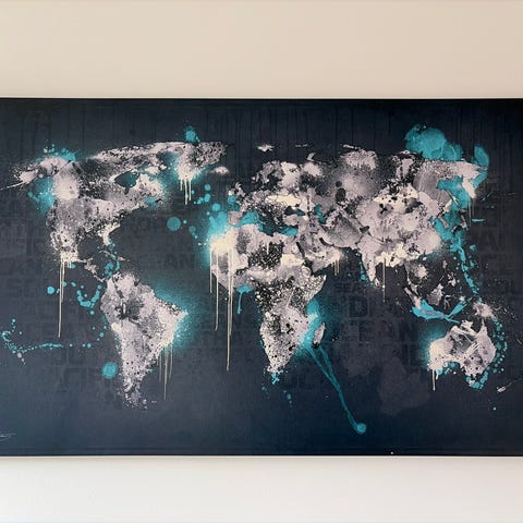 Verdenskortet er aldrig pakket ud eller brugt. Ny pris er 1.595kr - Egetræ - 145x76,5 cm.