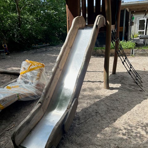 Rigtig fin rutsjebane i træ til indendørs brug. Klar til mange flere timers god leg. God til børn i alderen 1 til 7 år.