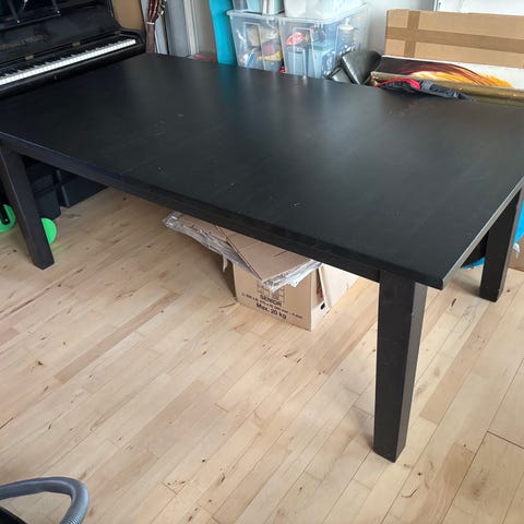 Bordet er købt i september 2025, og har stået på min lukkede altan siden november, da jeg købte et større bord. Der er ingen brugsspor