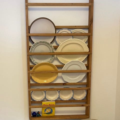 Witham tallerkenrække eller væghylde i egetræ. Smuk og med enkle linjer. Dimensioner 100 cm høj, 80 cm bred og 11 cm dyb.