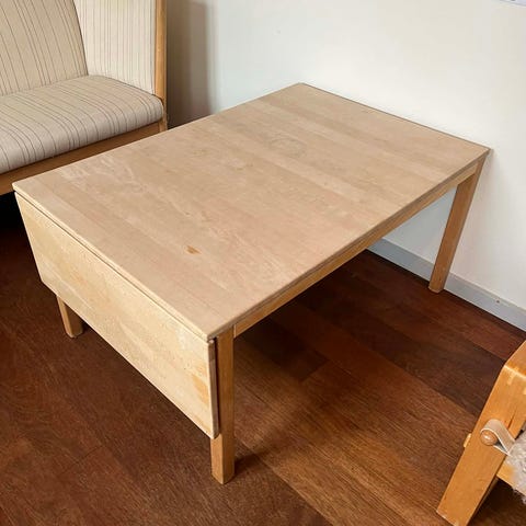Bordet har en pæn mørk træramme og ben samt lys fliseplader. Egnet som lille sofabord, lampebord eller afsætningsbord i stue, entré eller soveværelse.