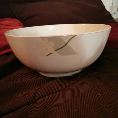 Bing & Grøndahl låg i porcelæn i hvid med blå dekoration. Låget har rund form med knop øverst og klassisk blomstermønster. Undersiden er mærket med B&G. Velegnet som erstatningslåg til matchende skål eller terrin, forudsat at mål passer til købers eget stel.