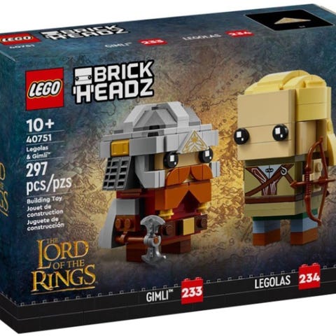 LEGO Lord of the Rings BrickHeadz byggesæt med figurer fra Ringenes Herre-universet. Sættet indeholder klodser til at bygge to BrickHeadz-figurer, der står på hver sin byggeplade. Egnet som samlerobjekt eller til udstilling. LEGO-temaet er Lord of the Rings og serien er BrickHeadz.