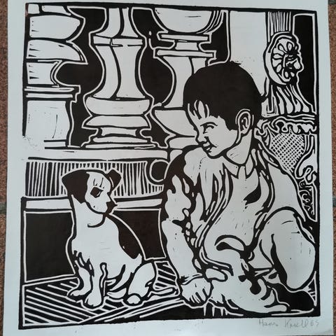 Originalt Hans Krull Linoliumstryk - 27x23 cm.