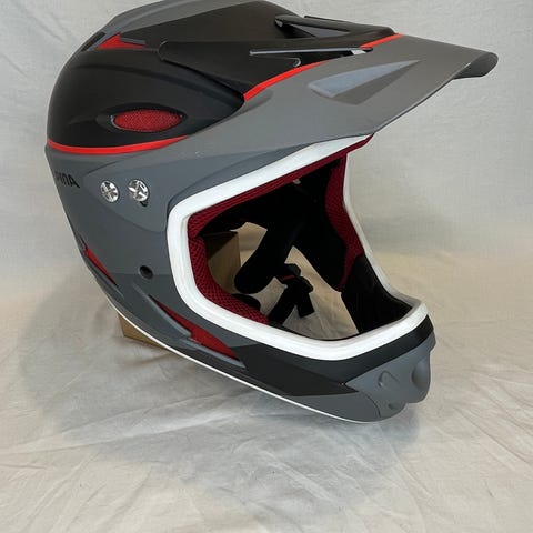 Cykelhjelm full face og benskinner sort.
