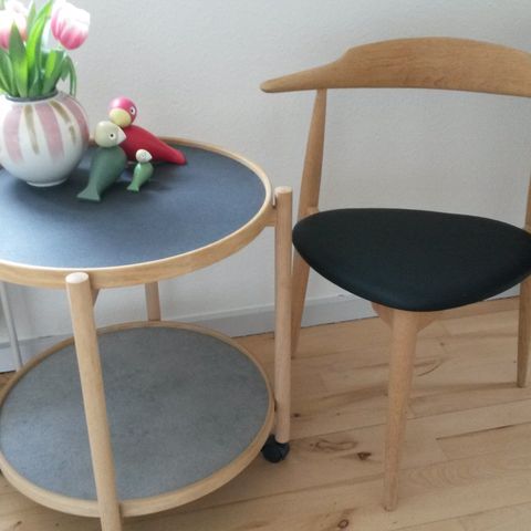 Hans J. Wegner hjerte stol i eg. Klassisk dansk design med buet ryg og trekantet sæde. Egetræet med synlig åretegning, da det er en gammel stol.