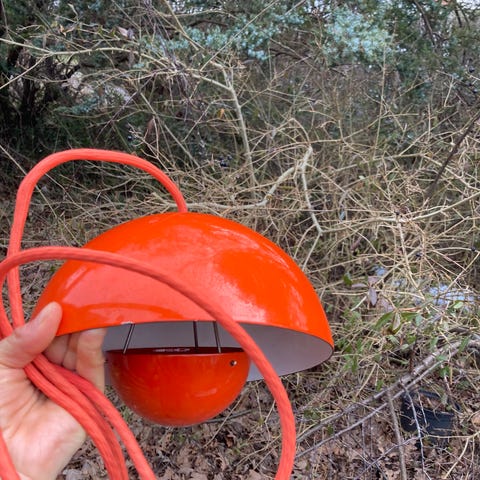 Super flot flowerpot i metal. Skålen er orange på indersiden. Original stofledning. Kan afhentes i 3300 eller Nørrebro efter aftale.