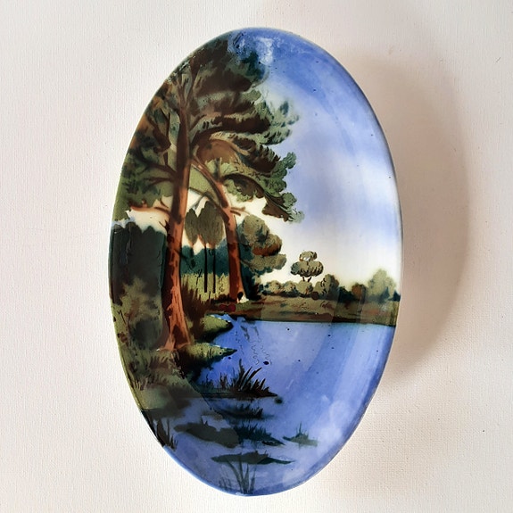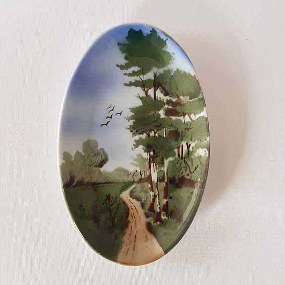 Fin lille platte ca. Ø9cm. Har krakeleringer.